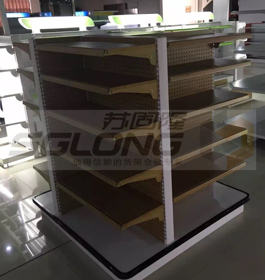 scaffale a gondola, scaffale a doppio lato per supermercati, scaffale per vetrine in metallo, scaffale per back panel perforato, apparecchiature per negozi al dettaglio, scaffali regolabili per vetrine, scaffale in acciaio resistente, scaffale per vetrine per supermercati